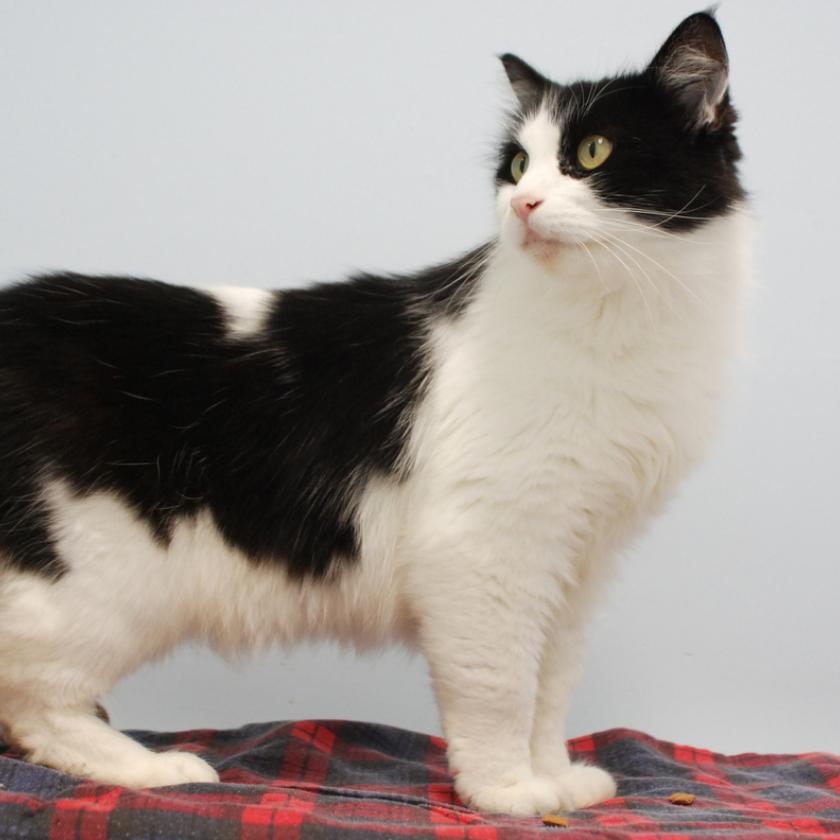 Bruce is a really confident and friendly cat, but he has just been moved in with some new kitty roommates and he is acting a little more reserved with them around. However, he is still fairly calm and doesn't cause any drama, so he would likely be able to adjust to sharing his home with another friendly cat. He has been spending his days watching the action from the scratching posts and quietly exploring on his own, happy to accept any pets he gets along the way.