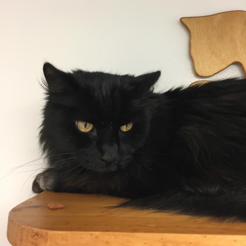 These two lovely senior cats are available for adoption as a bonded pair. They are both 10+ years, and very sweet. Dianna is the short haired grey girl who is slow moving but loves cuddling! Chuck is the long haired black boy who is quite timid and likes his own space. Please visit during our adoption viewing hours to come and meet this sweet pair.