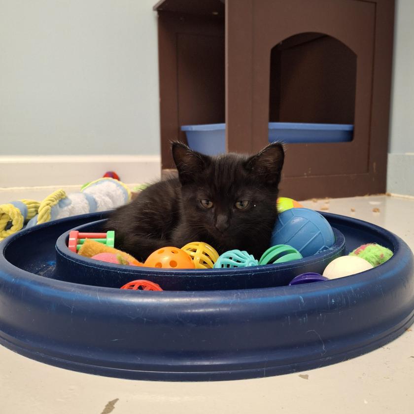 Nandor is no thoughts, all vibes. This boy is easy going, fun loving, and just a little bit special. He loves racing around and playing with his siblings, but he often gets so worked up he will run into walls. He is kind and inviting to other orphan kittens in the pound and loves to snuggle in close.