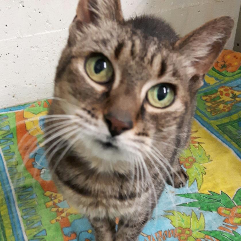 Norma is small and sweet. She is thrilled to visit with people and will tell you all about it. Norma likes to be pet so much she cannot even sit still. Norma likely has grown up in a home without other cats and has convinced us to give her a whole room all to herself.