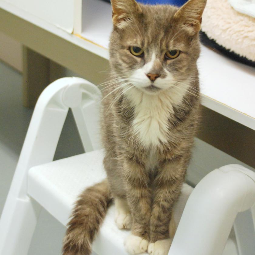Stanley is an absolute sweetheart. He is a calm and friendly gentleman who appreciates lots of treats and pets. He stays out of the way of the other cats and has no issues with them. He is looking for a loving retirement home where he can hopefully put on a few pounds.
